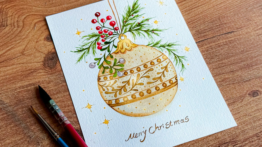 In this video, I’ll show you how to paint a festive Christmas Ball using a simple watercolor technique. This design is perfect as a unique Christmas card to share holiday cheer.